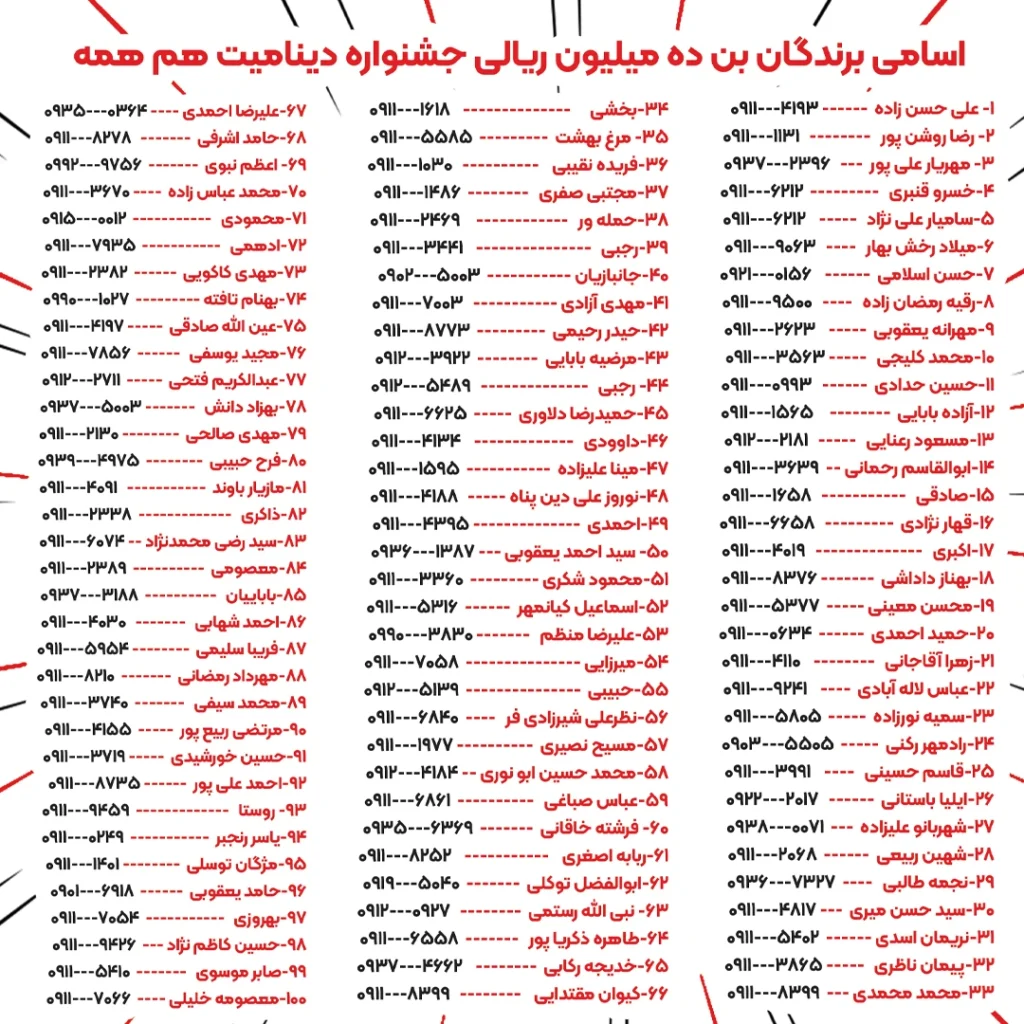 برندگان خوش شانس جشنواره دینامیت هم همه